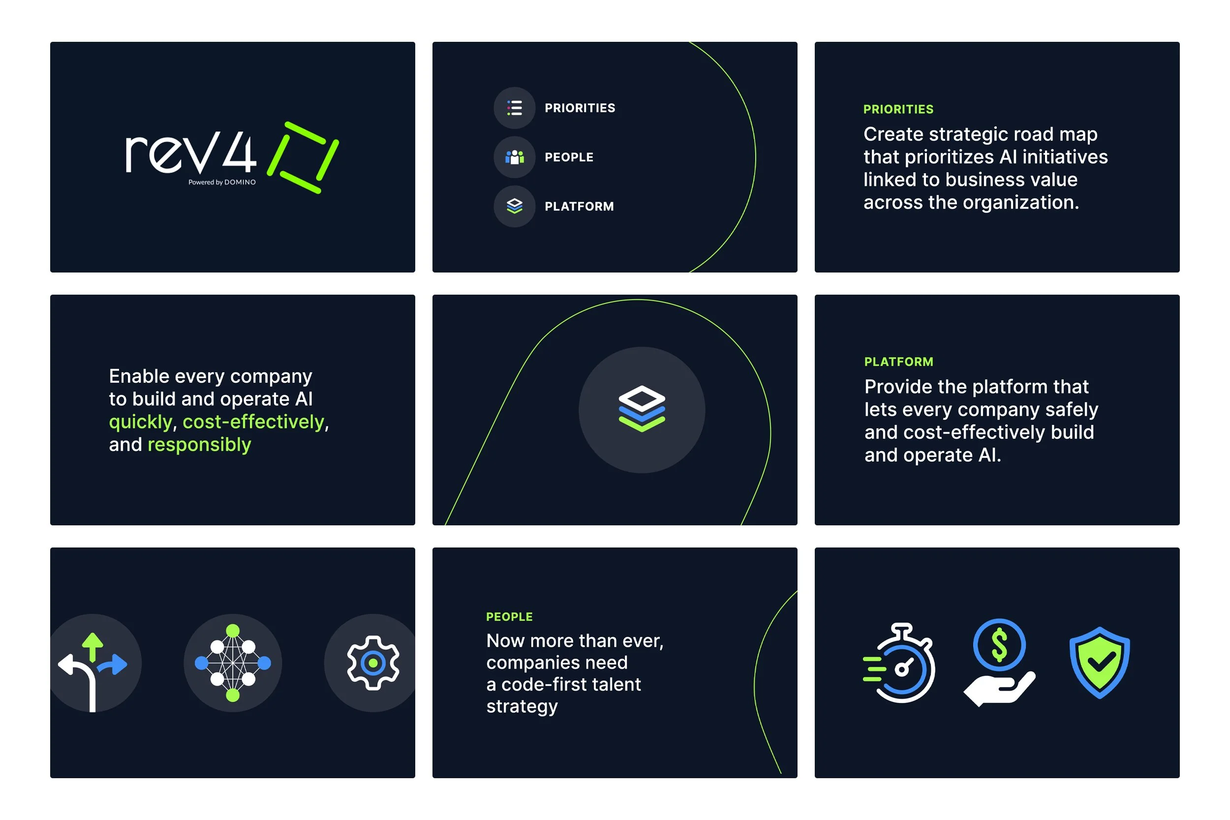 I partnered with Bay Area studio Deckhand to create the keynote slides used by Domino CEO Nick Elprin for the annual AI innovation conference, REV 4. Domino is an enterprise AI platform used by the largest AI-enabled companies powering data science focused on the world’s most important challenges. The task was to distill down extremely complex concepts into simple presentation-ready illustrations and animations. REV 4 was the largest and most well attended MLOps conference in the US in 2023, and a remarkable success for Domino.
